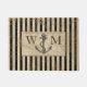 Diese nautische Monogramm-Türmatte weist einen schwarz-beige gestreiften Hintergrund mit einem schwarzen Anker in der Mitte und einem Weltkarte-Overlay auf. Personalisieren Sie das Monogramm mit Ihren eigenen Initialen. Entworfen von dem weltbekannten Künstler Tim Coffey.