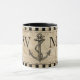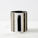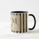 Die Tasse der nautischen Monogramm-Keramik weist einen schwarz-beige gestreiften Hintergrund mit einem schwarzen Anker in der Mitte und einem Weltkarte-Overlay auf. Personalisieren Sie das Monogramm mit Ihren eigenen Initialen. Entworfen von dem weltbekannten Künstler Tim Coffey.