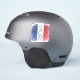 Darstellung der Flagge von Frankreich mit dem Schriftzug "2cv" und Motokolben, mit den Farben Rot, Weiss, Blau.