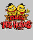 Olé Mis Huevos montre deux œufs de dessin animé coriaces portant des bandanas et des casquettes. Un pouce levé, l'autre avec les bras croisés dans le style gangster. Idéal pour les amateurs de jeux de mots drôles sur les œufs et de jeux de mots espagnols !