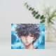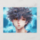 Diese digitale Grafik ist ein Ölgemälde eines Anime-Jungen mit schillerndem, lockiges Haar. Sein Gesicht ist von seinem Haarstil gerahmt, und seine Wimpern sind blau. ...