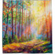 Ölgemälde im Herbst, landschaftliche Landschaft mit angenehm warmen Sonnenstrahlen, farbenfrohe Kunstmalerei, Hintergrund,hell,fallen,Blattwerk,modern,Park,Rot,Bäume,Gasse,Herbst,schön,blau,farbig,fein,wald,herrlich,grün,Vintag,Retro,Illustration,