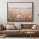 Ölgemäldefeld von Blume mit nebelhaftem Himmel Poster