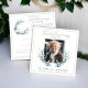 Ein handgemaltes Aquarellpaar von Olivenzweigen schmücken diese zarte und liebevolle Feier des Lebens in neutralen, sanften Tönen mit aquamarinen und goldenen Akzenten