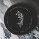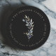 Ein wunderschön eleganter Rundaufkleber mit schwarzer Rücksendeadresse und einem handbemalten Olivenzweig in Aquarellfarbe. Personalisieren und machen Sie es zu Ihrem eigenen!