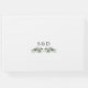 Modernes Design mit Aquarellkranz, Olivenspalte auf weißem Hintergrund, auf der Rückseite Initialen und Grünspalten. Verwenden Sie das Tool Personalisieren, um Ihre Informationen hinzuzufügen. Entsprechende Artikel finden Sie in meiner Sammlung von Lush Greenery.