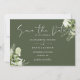 Diese elegante, grün-botanische Blumenhochzeit mit Olivenöl-dem-Datum-Karte kann mit Ihren Informationen in schicken Typografie mit Ihrem besonderen Foto auf der Rückseite personalisiert werden. Entwickelt von Thisisnotme©