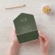 Diese schicke, minimalistische All-in-One-Hochzeitseinladung kann mit Ihren Monogramm-Initialen und Hochzeitstag-Informationen auf einem olivgrünen Hintergrund personalisiert werden. Die Einladung beinhaltet ein perforiertes UAWG mit Ihrem Hochzeitswebsite QR Code und Details. Entwickelt von Thisisnotme©