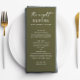 Olive Green Probe Dinner | Rustikale Nacht vorher Menükarte