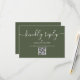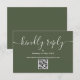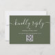 Eine einfache, elegante Signatur-Skript freundlich antworten Olivgrün RSVP Karte mit QR-Code. Entwickelt von Thisisnotme©