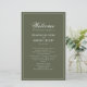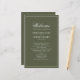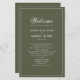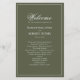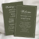 Vervollständigen Sie Ihre Hochzeitsfeier mit diesen eleganten Hochzeitsfeierprogrammen mit einem reichen Thema in olivgrüner Farbe und klassischer Kalligraphie. Dieses doppelseitige Single-Blechdesign bietet einen vereinfachenden, raffinierten Stil und präsentiert Ihre Service- und Brautparty-Liste schön. Die stilvolle, trendige Typografie unterstreicht die formale, traditionelle Ästhetik, während das elegante Design eine raffinierte Touch verleiht. Ideal für eine zeitlose und elegante Hochzeit