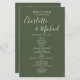 Elegantes Oliven-Grün-Signatur-Drehbuch Hochzeitsempfang-Programm mit Signatur Stilnamen. Lassen Sie sich mit Ihren Hochzeitsdetails in schicken weißen Schriftzeichen persönlich verwöhnen. Entwickelt von Thisisnotme©