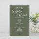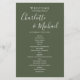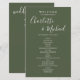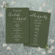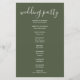 Élégant programme d'accueil mariage signature vert olive avec des noms de style signature. Personnalisez avec vos détails de jour de mariage en lettres blanches chic. Conçu par Thisisnotme©