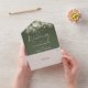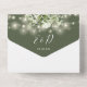 Alles in einer Olivgrün Hochzeitseinladung mit hübschen Saitenlichtern, Blumengrün und eleganter Typografie. Die Einladung enthält eine perforierte RSVP-Karte, die für Sie individuell adressiert oder links als leere Karte für die Handschrift der Adressdaten Ihres Gastes verwendet werden kann. Entwickelt von Thisisnotme©