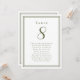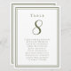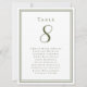 Unsere trendige Gästeliste für Hochzeitsgäste von 6.5" x 8.75" enthält eine Vorlage für die Tischnummer & Gästeliste am Tisch. Persönliche Gestaltung mit eleganten Buchstaben und Schriften mit den Namen und Details Ihres Gastes in rustikalem Olivengrün auf einem knusprigen weißen Hintergrund. Perfekte Ergänzung für eine Hochzeit, ein Jubiläum oder eine große Verlobungsfeier. Die Rückseite ist ein Duplikat der Vorderseite, das eine einfache Sicht von beiden Seiten ermöglicht. Benutzerdefinierte Farbanforderung akzeptiert.
