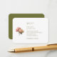Chic mit moderner Eleganz. Diese Hochzeitskarte mit QR-Code auf der Rückseite bietet eine zeitgenössische Blumenillustrierung und Set moderner Schriftart vor einem knackigen, weißen Hintergrund vorne und olivgrün hinten. Gestaltet sich in eine größere Hochzeitssuite mit Blumenbezug, die auch die Stilllegung von Hochzeitsfeiern umfasst.