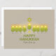Eine Gruppe von lustigen Oliven treffen sich für ein Foto op und bilden eine Menorah, um einen Happy Hanukkah Gruß zu senden.