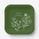 Olive grüne Teller, schlichtes, elegantes Design mit Blumendetails.