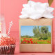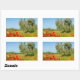 Un autocollant photo rectangulaire avec un vieil olivier dans un champ de pavot rempli de pavots rouges vibrants dans un paysage en Toscane, Italie.
