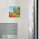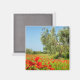 Aimant photo souvenir avec un vieil olivier dans un champ de pavot rempli de pavots rouges vibrants dans un paysage en Toscane, Italie.