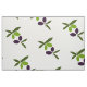 Grüne und lila Oliven und Blätter.