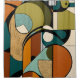 Entspannen Sie in diesem atemberaubenden, modernen Kunstwerk aus der Mitte des Jahrhunderts mit dynamischen abstrakten Formen in einer raffinierten Oliven-Weiß-Palette, die mit lebhaften Farbtönen betont wird. Dieses Design spiegelt die Essenz der 50er Jahre und des 60er Retro ästhetik wider, die zeitlose Eleganz mit einer zeitgenössischen Drehung vermischt. Es ist perfekt für Wandkunst, Wohngestaltung oder besondere Geschenke geeignet und verleiht jedem Zimmer eine Touch Vintagen Charmes und modernen Flairs.