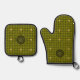 Olivenöl mit goldenem Akzent Hahnentrittmuster Ofenhandschuh & Topflappen-Set