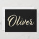 Eine personalisierte schöne und edle Karte / Grußkarte / Geschenkkarte / Geburtstagskarte im Handwriting liquid white gold Design für Oliver.