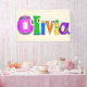 Begrüßen Sie den Geburtstag eines ganz besonderen Menschen oder jeden Tag mit einem Cartoon-Charakter-Banner "Olivia" von Funny Fellows and Curious Creatures™! Das Banner kann individuell angepasst werden. Sie können Text hinzufügen - wählen Sie den Typ des Schriftartes, die Farbe, die Größe, die Position, die Hintergrundfarbe und mehr!