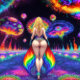 Eine visionäre Begegnung: The Art of Cortical Travelling Waves In einer faszinierenden Erkundung des mystischen Gefüges der Psychedelie, entdeckt dieses faszinierende Kunstwerk die komplexe Verbindung zwischen der menschlichen Form und der komplexen Welt von DMT-induzierten Erfahrungen. Die zentrale Figur, eine atemberaubende Frau mit anmutig kurvigen Hüften, verkörpert die universelle weibliche Energie und den Power der Sinnlichkeit. Sie ist kurz davor, die Geheimnisse kortikaler Wellen zu enthüllen, ein Phänomen, das eng mit den geistig verändernden Effekten von DMT verbunden ist. Die lebhaften Farben und wirbelnden Muster des Kunstwerks rufen ein Gefühl der Transzendenz hervor und laden die Betrachter ein, eine Reise der Selbstfindung und des erhöhten Bewusstseins zu unternehmen. Das subtile Wechselspiel zwischen der ätherischen Landschaft und der faszinierenden Aura der Frau schafft eine immersive Erfahrung, die das Publikum in eine alternative Realität bringt, in der die Grenzen zwischen dem Physischen und dem Metaphysischen verwischt werden. Indem es das Wesen eines DMT-ähnlichen Erlebnisses erfasst, unterstreicht dieses außergewöhnliche Stück nicht nur das transformative Potenzial psychedelischer Substanzen, sondern unterstreicht auch den tief greifenden Einfluss der Kunst auf unsere Wahrnehmung der Realität. Es dient als Erinnerung, dass das Streben nach Wissen und Verstehen eine kontinuierliche Reise ist, die durch die Erforschung veränderter Staaten des Bewusstseins und die grenzenlose Kreativität des menschlichen Geistes bereichert werden kann.