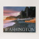 COPYRIGHT Ric Ergenbright/DanitaDelimont.com | US48 RER0035.jpg | USA, Washington Staat, Olympic NP. Wellen ragen den felsigen Strand bei Sonnenuntergang am Rialto Beach, Teil des Weltkulturerbes, das Olympic NP, Washington Staat ist.