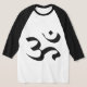 Weiß und schwarz ¾ Ärmel raglan T - Shirt mit dem Symbol für Om, die heilige Silbe, die in hinduistischen und buddhistischen Gebeten und Mantras gesungen wird. Om steht für Schöpfung, Zerstörung und Bewahrung. Sehen Sie sich die gesamte Bekleidungskollektion der Erleuchtung im Abschnitt GASTGESCHENKE an.