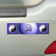 Autoaufkleber mit einem Effekt 3D und einer bläulichen Tönung mit zwei Yin Yang Symbolen, universelle Balance und OM darstellend, das Schaffung darstellt.