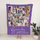 Elegante lila Sake-Decke für die beste Oma der Welt mit "Oma" in einer stilvollen weißen Schrift, einer 30-Foto-Collage ihrer Familie und ihrer Namen in der modernen weißen Typografie.
