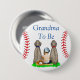 Oma, um Baby Dusche Knopf. Baseball-Babydusche. Kleiner Baby in einem Baseballhut, neben seinen zwei Hundefreunden sitzend.