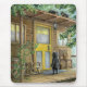 Ein Trio schwarzer Bärenjungen klopfen an die Tür der Blockhütte von Oma. Vielleicht riechen sie den frischen Kuchen im Fenster! Gouache Gemälde inspiriert von wahren Geschichten von meinem Freund Carol in Gatlinburg, Tennessee. Kunst von Amanda Diehl, Paxdomino Designs