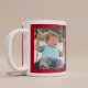 Feiern Sie den Opa dieses Weihnachtsfest mit dieser maßgeschneiderten saisonalen roten Tasse mit 2 Fotos seiner Enkel und "Frohe Weihnachten" in der modernen weißen Typografie. Sie können auch die Enkelnamen und das Jahr hinzufügen.