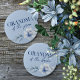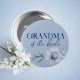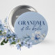 Oma des Bride Blue Brautparty Buttone auf Button. Die Blume sind in einem hellblau-schieferblauen Hintergrund mit schönen, eleganten, staubblauen gehalten. Karo die anderen passenden Knöpfe in der Kollektion für andere wichtige Gäste wie Trauzeugin, Braut zu sein, Brautjungfrau und mehr!