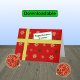 Persönliche Weihnachtsgrüße für Ihre Großmutter. Die Karte hat das Aussehen eines Paketes mit einem farbenfrohen Muster von stilisierten Schneeflocken in goldenen und grünen Farben auf einem roten Hintergrund. Das Paket ist mit einem goldenen "Band" verbunden und hat ein "Geschenketikett" mit der Nachricht "Happy Christmas Oma". Im Text heißt es: "Ein frohes Weihnachtsfest und ein glückliches neues Jahr wünschen" oder Sie können dies leicht ändern, einfach in das Feld eingeben. Für viele weitere Beziehungen stehen Einzelkarten zur Verfügung - Karo der Sammlung.
