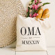 Diese minimalistische Totentasche, die eine schicke Oma feiert, zeichnet sich durch eine minimalistische Tasche aus, die "Oma" oder Ihre Wahl von Oma-Spitznamen in schwarzen Serifenschrift auszeichnet. Mit dem Jahr, in dem sie zu einer Großmutter wurde, in eleganten römischen Ziffern für eine schicke Touch.