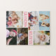 Das moderne Collage Puzzle aus Foto enthält 6 Fotos, das Typografie-Skript ''Oma we Liebe you'' in trendiger Hauptstadt, die auf einem hellrosa Hintergrund schreibt. Schönes Geschenk für Oma oder einen Sake.