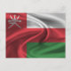 Postcard mit der Fahne von Oman im gewellten Stoffdesign. Dieses Design zeichnet sich durch die Oman Fahne Farben und Design mit einem schönen Wellenstoff texturierten Effekt aus. Dieses Flag-Design ist eine großartige Möglichkeit, Ihnen zu zeigen, dass Sie stolz sind, aus Oman zu sein.
