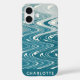Schützen Sie Ihr Handy stilvoll mit diesem stilvollen abstrakten Wellenmuster in ombre aquamarin blau, personalisiert mit Ihrem Namen.