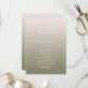 Simple Ombre Blush Pink & Green Wedding Ceremony Program. This modern minimal Order of Services Card is simple classic and elegant with a subtle ombre gradient fade and a pretty signature script calligraphy font with tails. Shown in the new Colorway. Available in several color options, or feel free to edit the colors from within the editor (click customize further while personalizing).