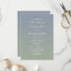 Einfache Ombre Dusty Blue & Green Hochzeit Zeremonie Programm. Diese moderne Minimal Order of Services Card ist einfach klassisch und elegant mit einem subtilen ombre Gradientenverbund und einem hübschen Signatur-Script-Kalligraphie-Schriftart mit Schwänzen. Im neuen Farbraum gezeigt. Erhältlich in mehreren Farboptionen, oder fühlen Sie sich frei, die Farben aus dem Editor zu bearbeiten (klicken Sie weiter anpassen während der Personalisierung). Um mehr zu sehen, suchen Sie nach Chic Paperie's Hochzeitskollektionen 2022, um alle über Trend Designs und Hochzeitsfarben für dieses Jahr zu sehen.