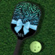 Luxuriöses Pickleball Paddle mit glitzerndem Zebradruck, blauem Bogen und dem Monogramm.