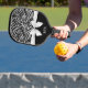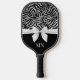 Luxuriöses Pickleball Paddle mit glitzerndem Zebradruck, weißem Bogen und dem Monogramm.