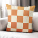 Kopfkissen mit cremefarbenen und orangefarbenen Schachbrettern.