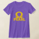 Griechischer Buchstabe Omega mit "PERLE" im Gold auf lila T-Stück.