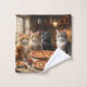 Sur La Photo, Quatre Chats Sont Assis Autour D'Une Table Avec Une Pizza Prêt À Manger.